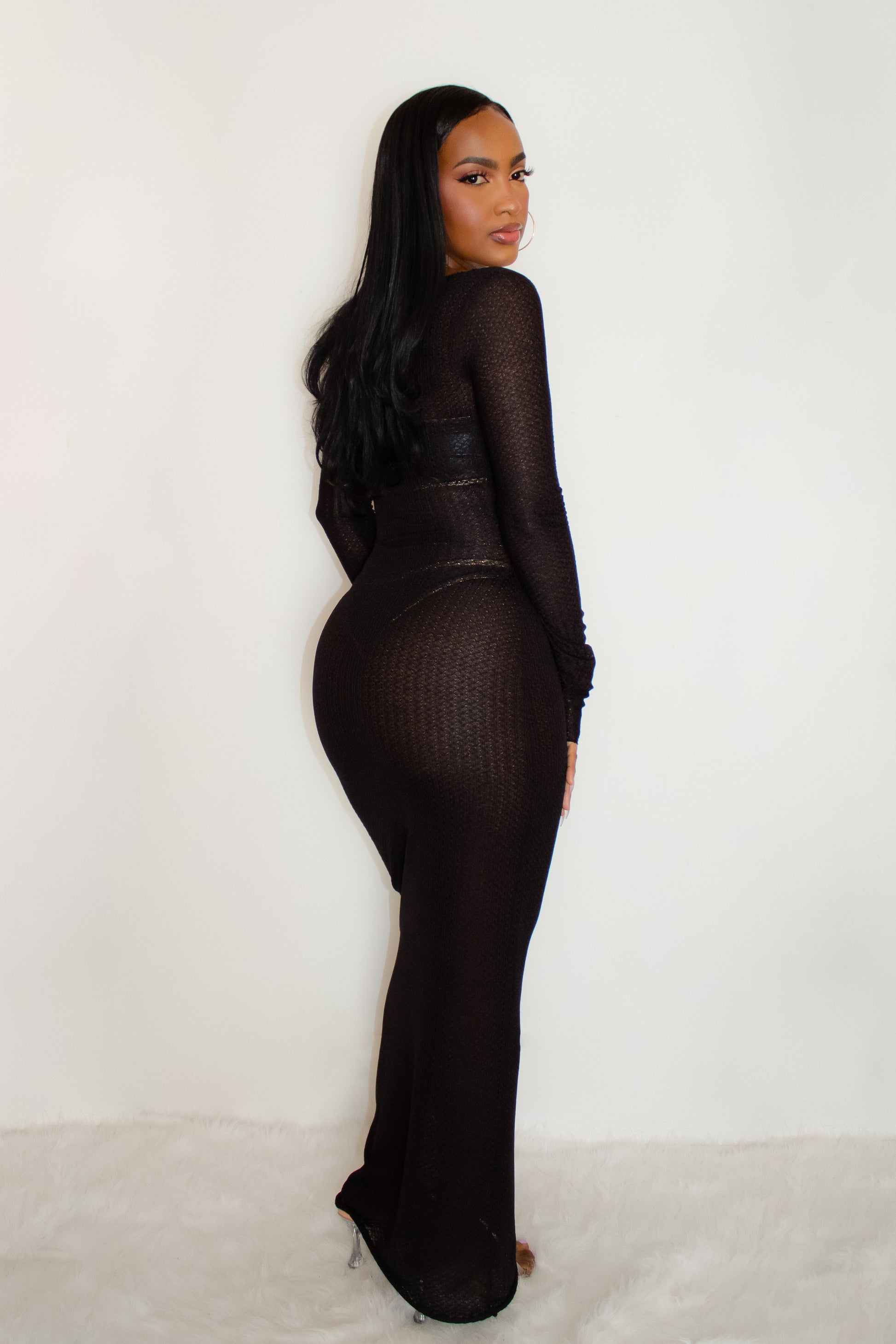 Features: stretchy, sheer, low back, versatile, floor length.